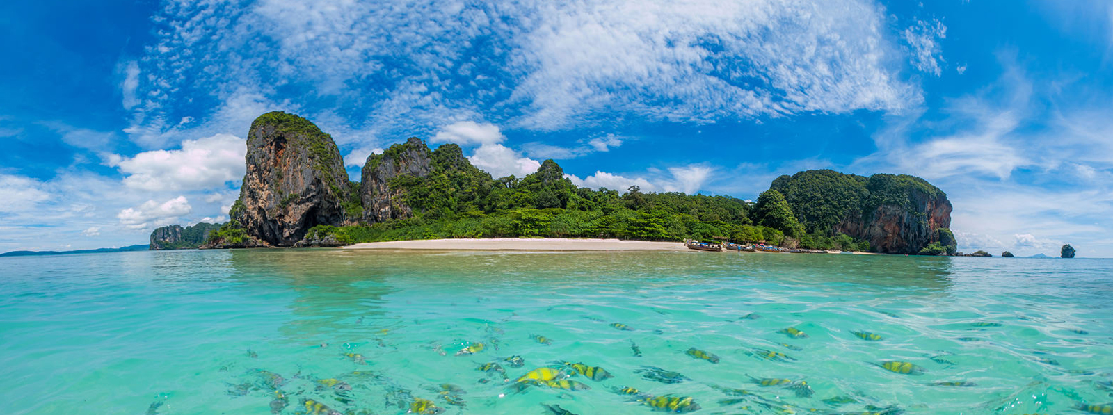 This morning discover the best dive sites in Thailand on your full day Excursion to Phi Phi Island.(Pick Up – 0700 Hrs / Duration – 08 Hrs).Spend the day cruising around the two superb islands - Phi Phi Don and Phi Phi Ley, exploring wonderful caves, swimming, snorkeling, sunbathing and relaxing on the white sandy beaches. The islands, when approached by boat, rise from the sea like a fortress. Sheer cliffs tower overhead then give way to beach-fronted jungle. It's love at first sight. Don't forget to bring your Cameras for the perfect tropical island paradise photographs. (B/L/D)
